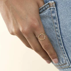 Bague large ajustable en laiton plaqué or en forme de coquillage évidé. PM: 48/50 – MM: 52/54 – GM: 56/58