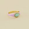 Bague, en argent vĂ©ritable 925/1000 dorĂ©es 750/1000, sertie d’une pierre fine. Un liserĂ© d’Ă©mail, sur la tranche du serti, apporte une vraie touche d’originalitĂ©! Un modĂšle classique revisitĂ© pour affirmer style et personnalitĂ©!