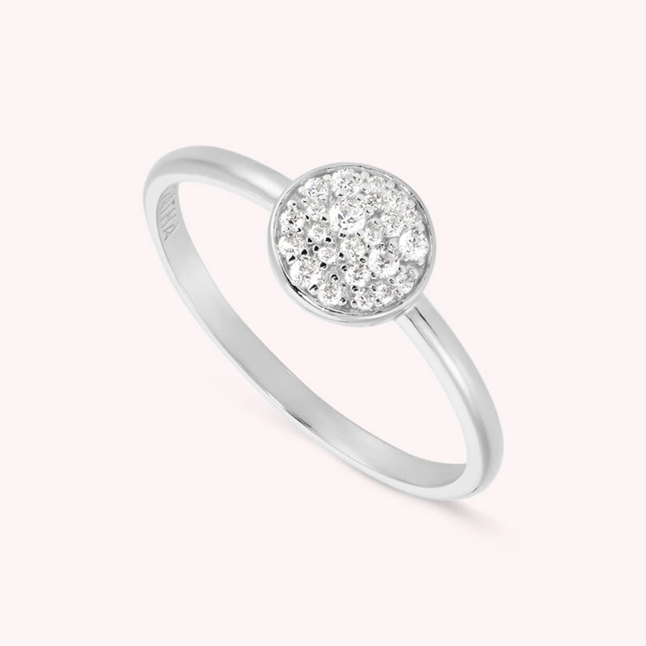 Bague fine en argent véritable ornée d’une pastille pavée d’oxydes de zirconium