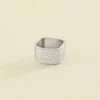 Bague large en laiton plaqué or ornée d’un cabochon de pierre fine de forme ovale avec une bordure torsadée