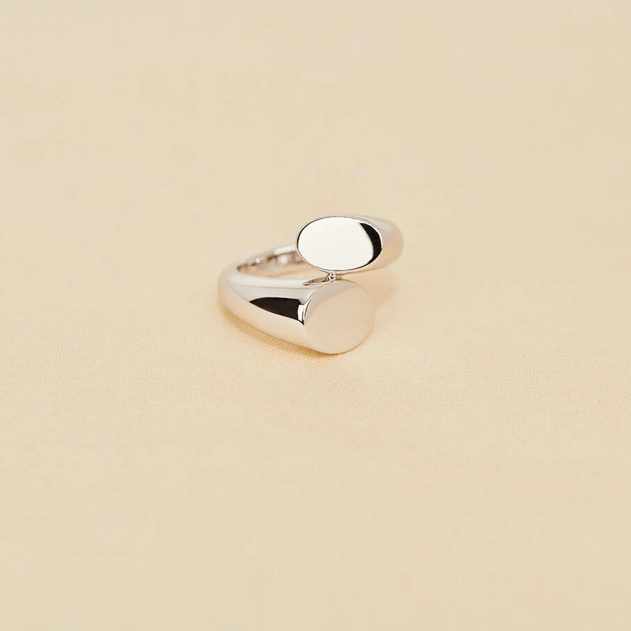 Bague toi& moi, en argent véritable, avec des extrémités planes. Un design qui donnera du volume à vos mains !