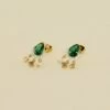 Boucles d’oreilles dormeuses, en argent vĂ©ritable dorĂ© 750/1000, ornĂ©es d’une pastille en onyx et d’un motif lune serti d’oxydes de zirconium