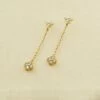 Boucles d’oreilles mi-longues, en laiton doré 750/1000, oxydes de zirconium setis clos sur chaine et soleil émaillé au bout