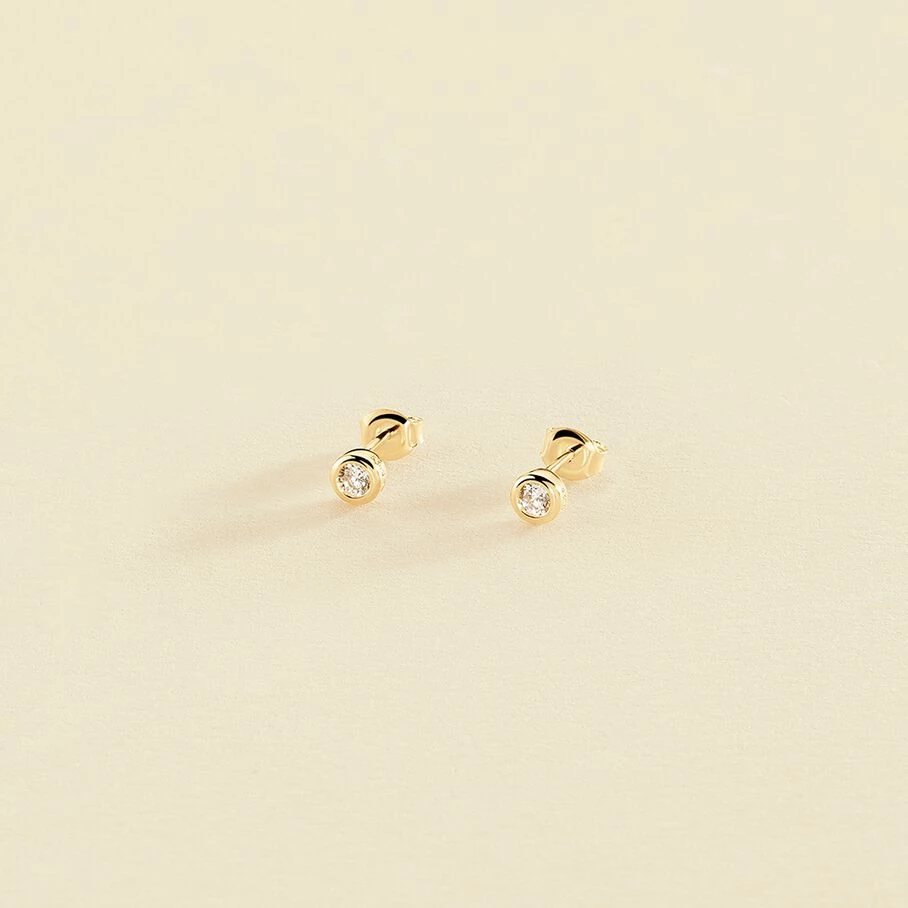 Boucles d’oreilles puces en argent véritable 925/1000, dorées 750/1000, ornées d’oxydes de zirconium sertis clos