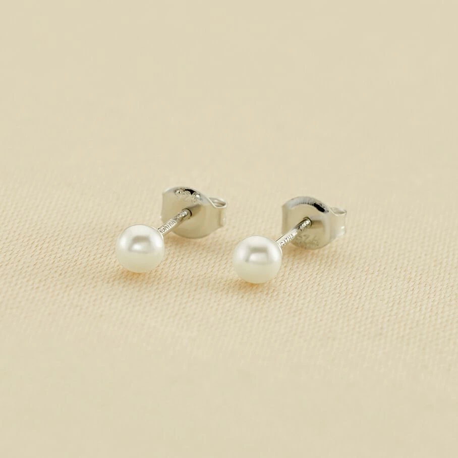 Boucles d’oreilles puces en argent véritable ornée de perles de verre de 4 mm de diamètre