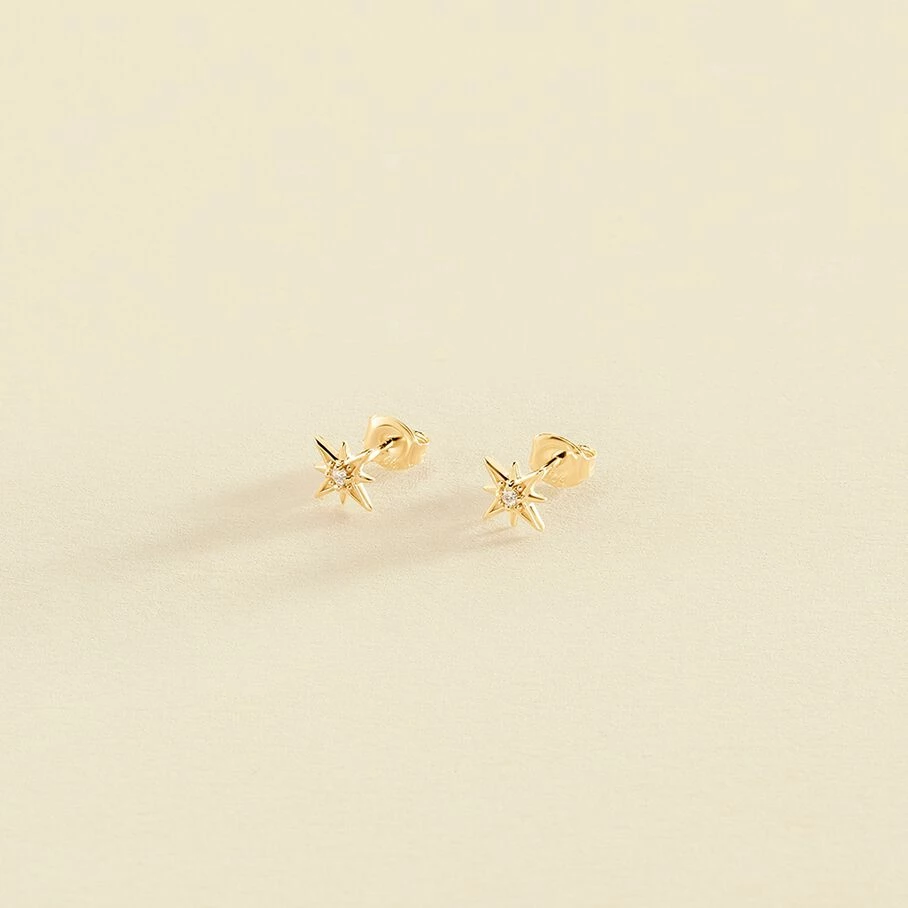 Boucles d’oreilles étoiles en argent véritable dorées 750/1000 avec un oxyde de zirconium