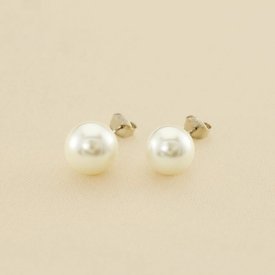 Boucles d’oreilles puces en argent véritable ornées de perles de verre de 10 mm de diamètre