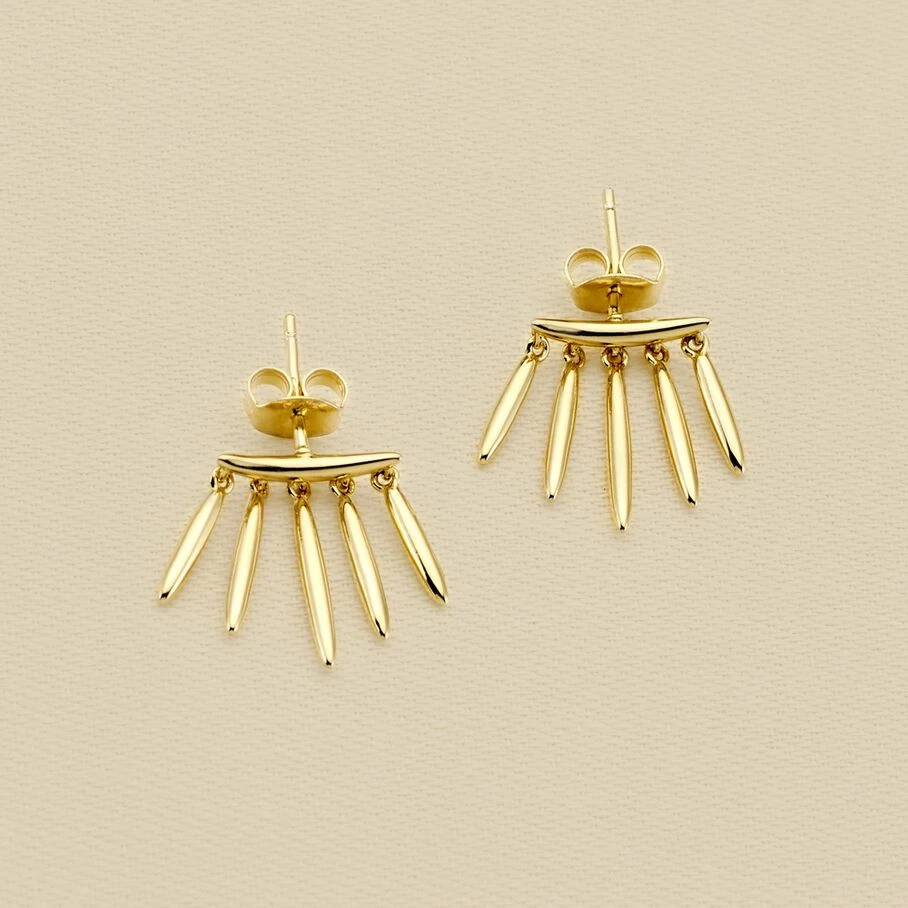 Boucles d’oreilles puces, en argent véritable 925/1000 et dorées 750/1000, ornées d’un rideau de pampilles rayonnantes.