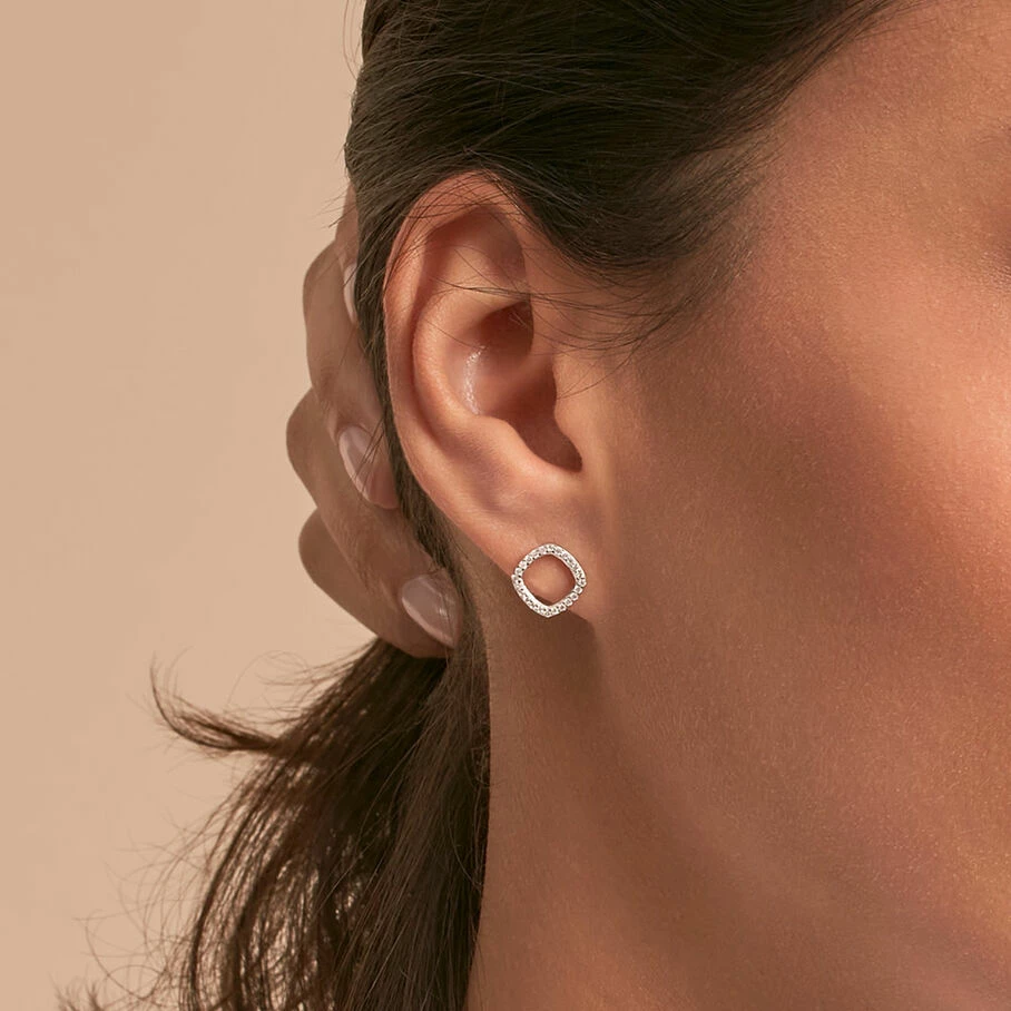 Boucles d’oreilles puces en argent véritable ornées de carrés évidés pavés d’oxydes de zirconium