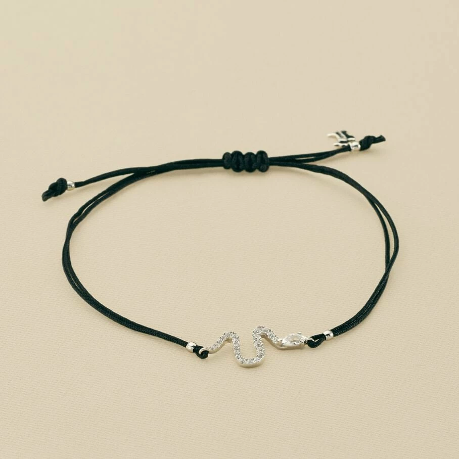 Bracelet cordon ornĂ© d’un serpent en argent vĂ©ritable pavĂ© d’oxydes de zirconium