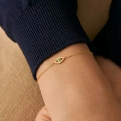 Bracelet, en argent véritable 925/1000 et doré 750/1000, dont la chaine est ornée d’un petit œil turc. L’iris émaillé et le contour de l’œil serti d’oxydes de zirconium apportent un vrai raffinement et éclat au produit!