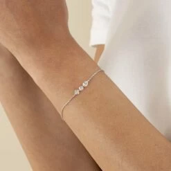 Bracelet fin, en argent véritable, avec une trilogie d’oxydes de zirconium percés en forme de poire, de rond et coussin