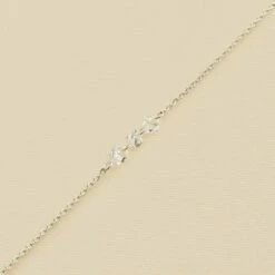Bracelet fin, en argent véritable, avec une trilogie d’oxydes de zirconium percés en forme de poire, de rond et coussin