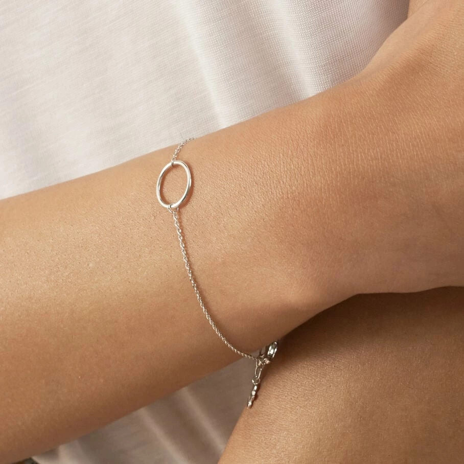 Bracelet, en argent véritable, avec un anneau évidé monté sur une chaine fine