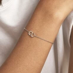 Bracelet souple en argent véritable orné de deux anneaux entrelacés dont un pavé d’oxydes de zirconium