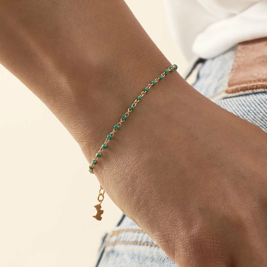 Bracelet, en laiton dorĂ© 750/1000, perles d’Ă©mail sur toute la longueur