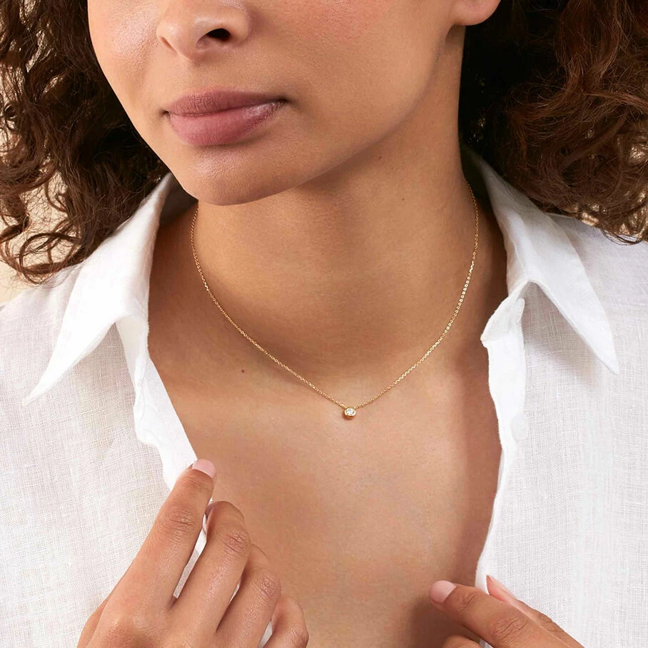 Collier court en argent véritable doré 750/1000, orné d’un oxyde de zirconium serti clos