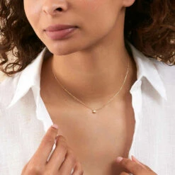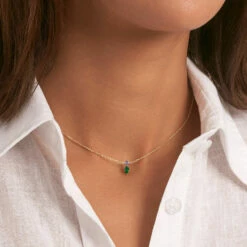 Collier court, en argent véritable doré à’ l’or fin, avec un pendentif fait d’une trilogie d’oxydes de zirconium percés en forme de poire, rond et coussin