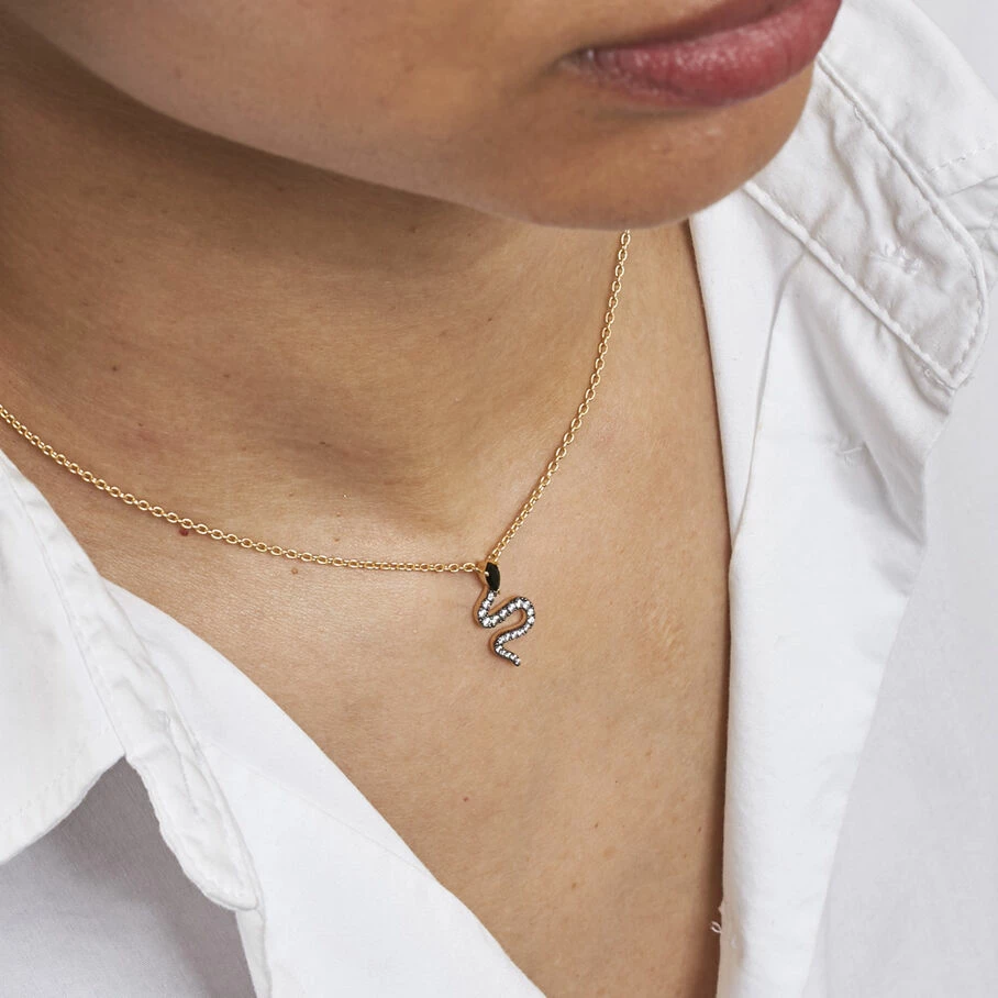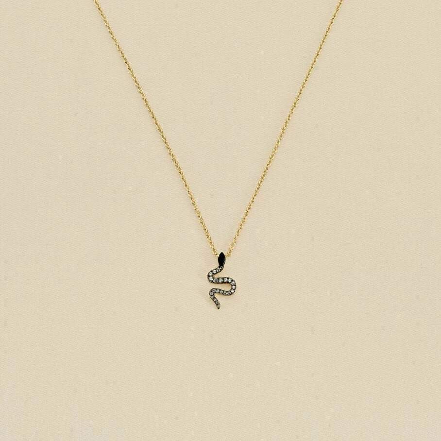 Collier court en argent vĂ©ritable dorĂ© 750/1000, ornĂ© d’un serpent pavĂ© d’oxydes de zirconium