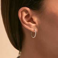 Créoles de 20mm de diamètre, en argent 925/1000, sur laquelle ont été sertis clos une série d’oxydes de zirconium