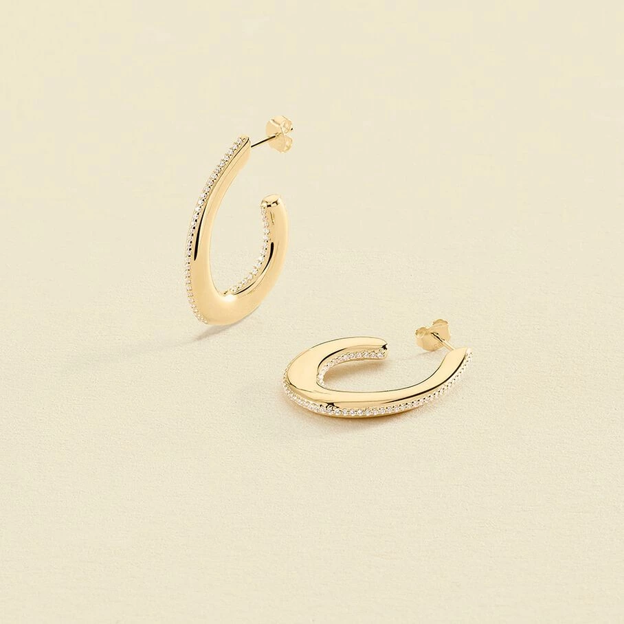 Créoles, grand modèle, en argent 925/1000 et dorées 750/1000, représentant une demi goutte et dont la tranche est sertie d’oxydes de zirconium