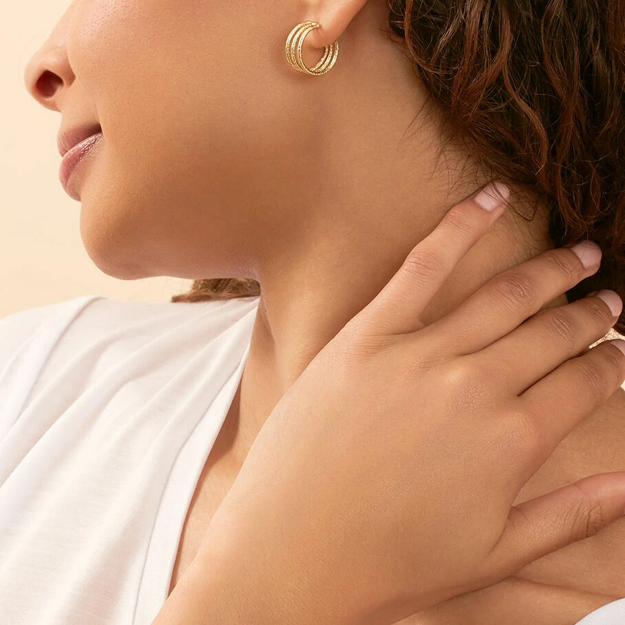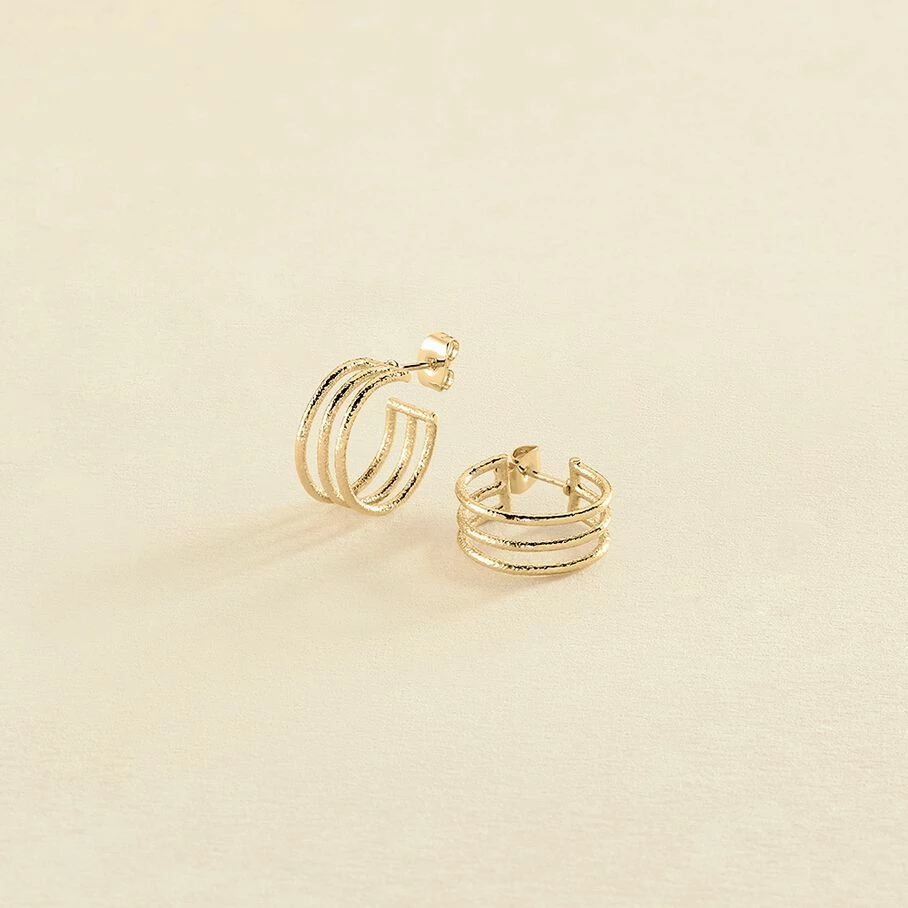 Créoles de 16.5mm de diamètre, en laiton doré 750/1000, faites de plusieurs fils texturés