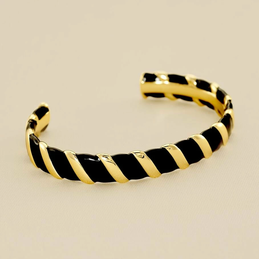 Jonc ouvert, en laiton doré, avec un effet torsadé en émail